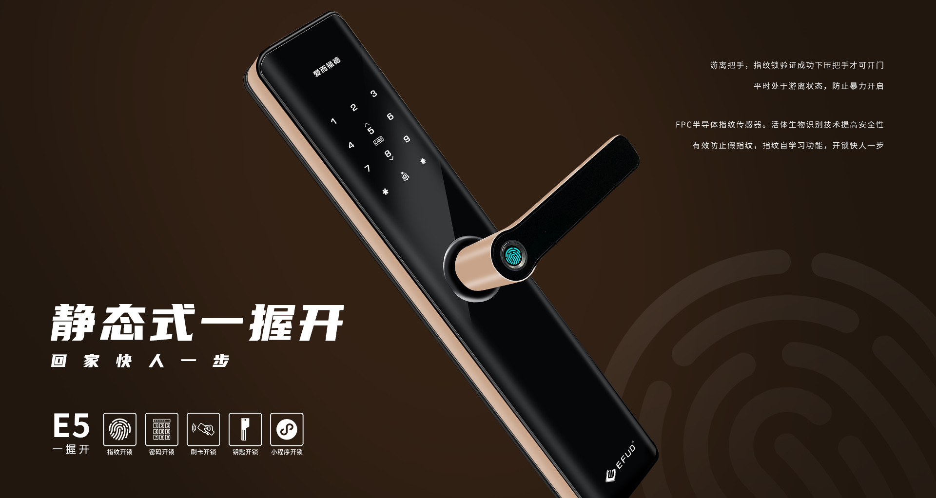 中山市愛而福德電子科技有限公司專注家用智能鎖25年,是一家集產品研發、制造、銷售、售后于一體全產業鏈的國家高新技術企業。公司擁有現代化生產基地8500平方米,具備35000把/月的生產規模及一支十多年專業的研發團隊,產品均擁有100%自主知識產權。公司一直秉承“創新智造,工匠精神”,為每一位用戶提供智能、便捷、安全的高品質生活!